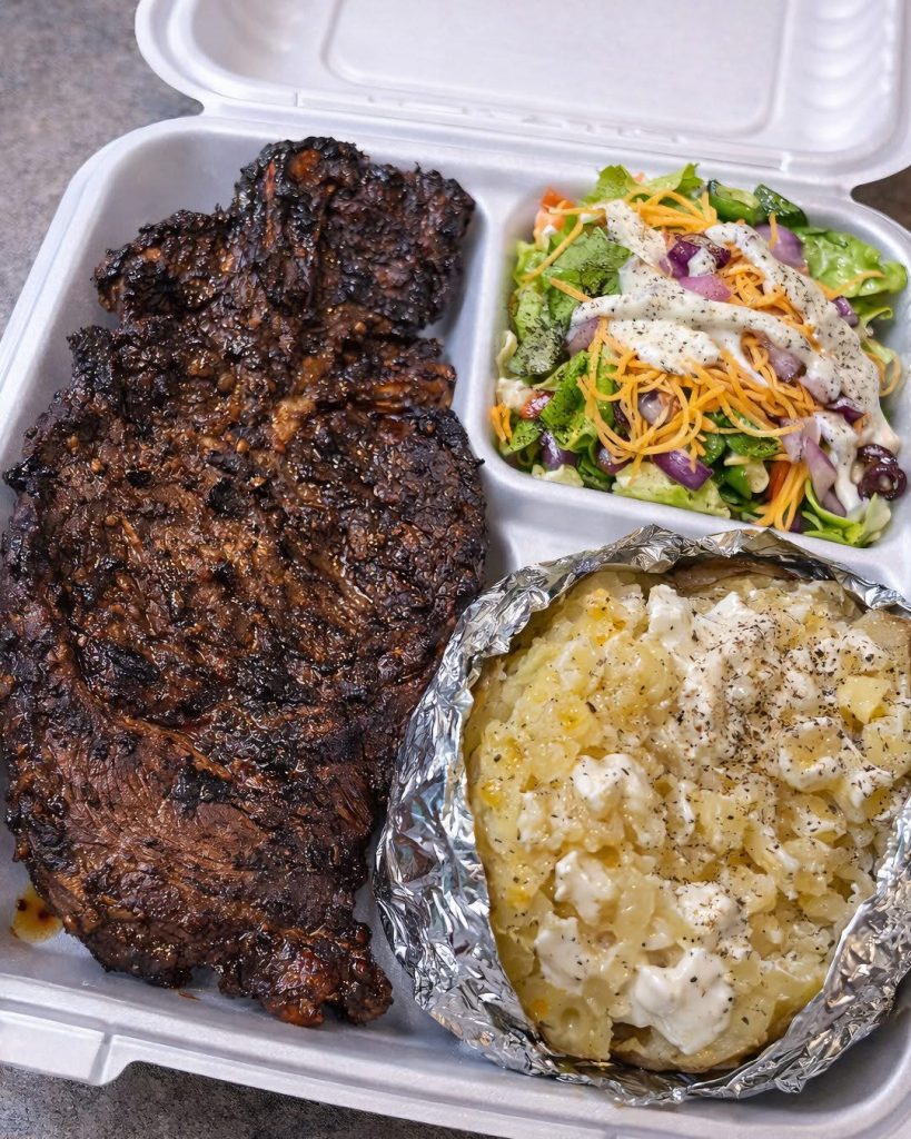 Ohhh yeah 😍 that tray is pure comfort food. Here’s a spot-on recipe to recreate it at home: Juicy Grilled Steak + Loaded Baked Potato + Creamy Side Salad. ⸻ …