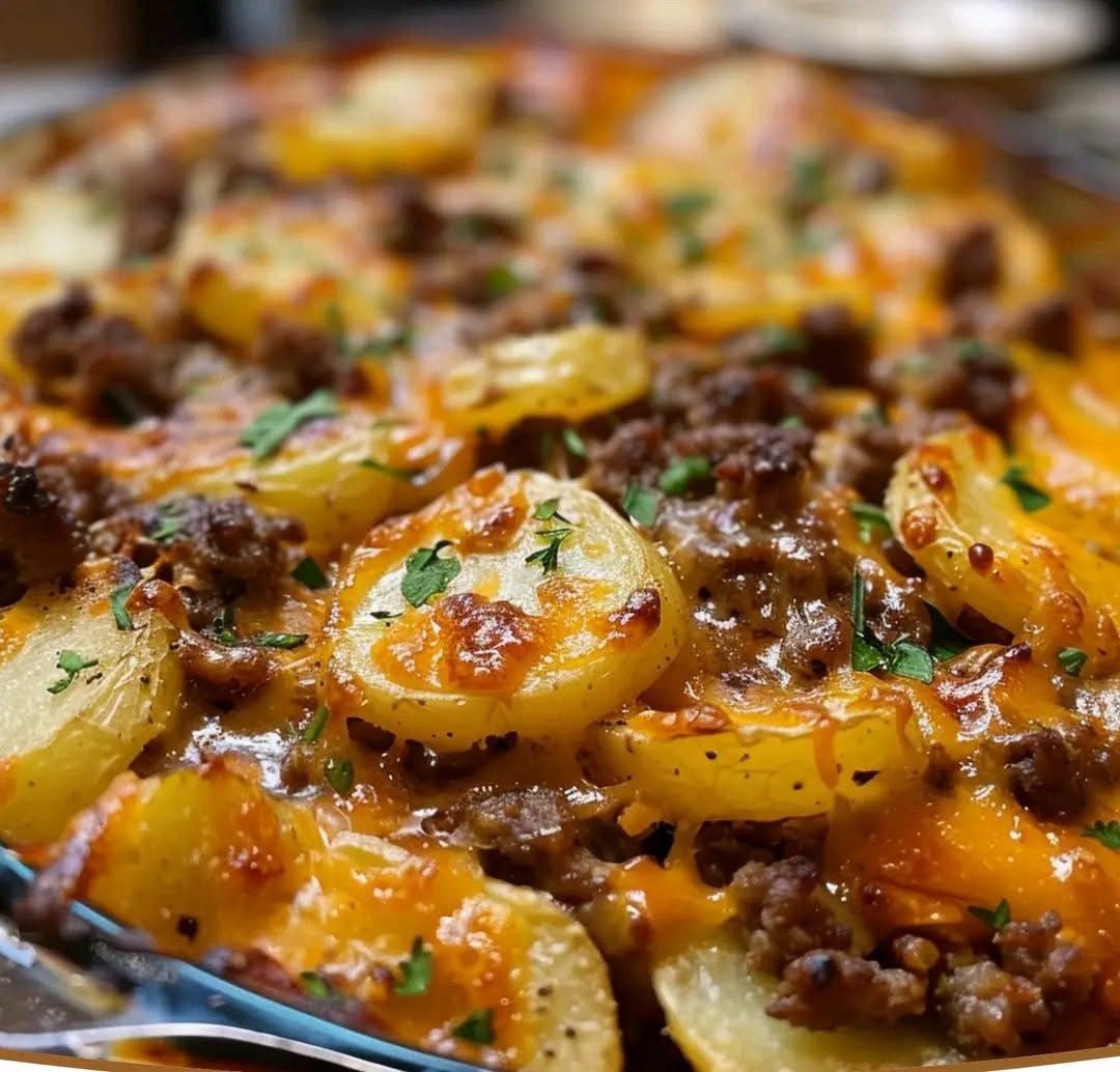 This Cheesy Ground Beef and Potato Casserole features layers of creamy potatoes, juicy seasoned beef, and rich melted cheese β€” baked to perfection. It’s warm, comforting, and bursting with flavor in every bite β€” the kind of dish that fills the kitchen with irresistible aroma.