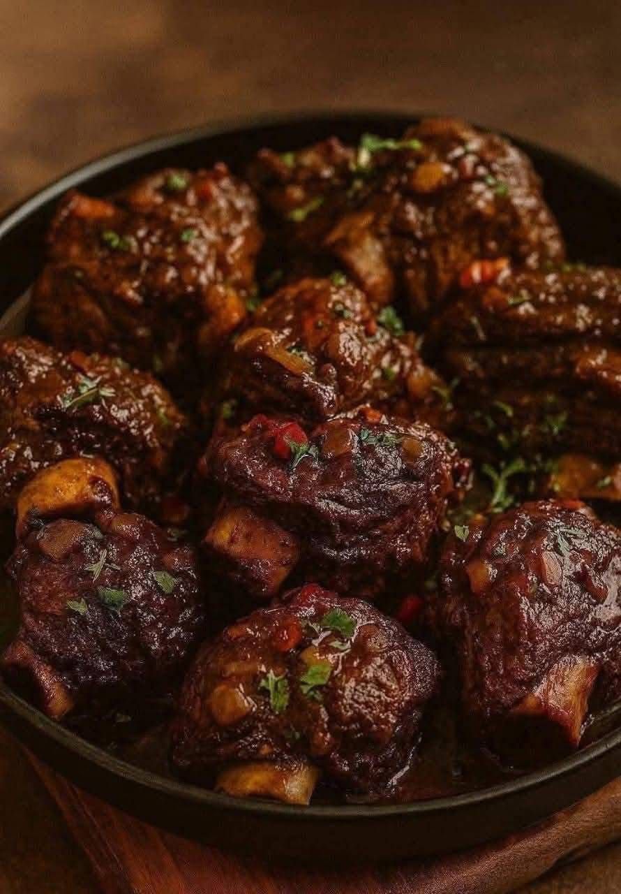 Braised oxtail is a dish that transforms a humble cut of meat into a rich, luxurious meal. Slow-cooked until meltingly tender, oxtail releases collagen and marrow, creating a naturally thick, flavorful sauce. Whether served over rice, mashed potatoes, or with crusty bread, this dish is the perfect combination of comfort and sophistication — ideal for family dinners, celebrations, or cozy weekends.