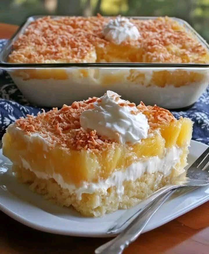 Pineapple Coconut Delight emerged from mid-20th-century American dessert traditions, especially those of the 1950s and 1960s, when canned pineapple and coconut flakes became popular pantry staples. It symbolizes tropical escape and hospitality—bringing warmth, sweetness, and joy to gatherings around the table.