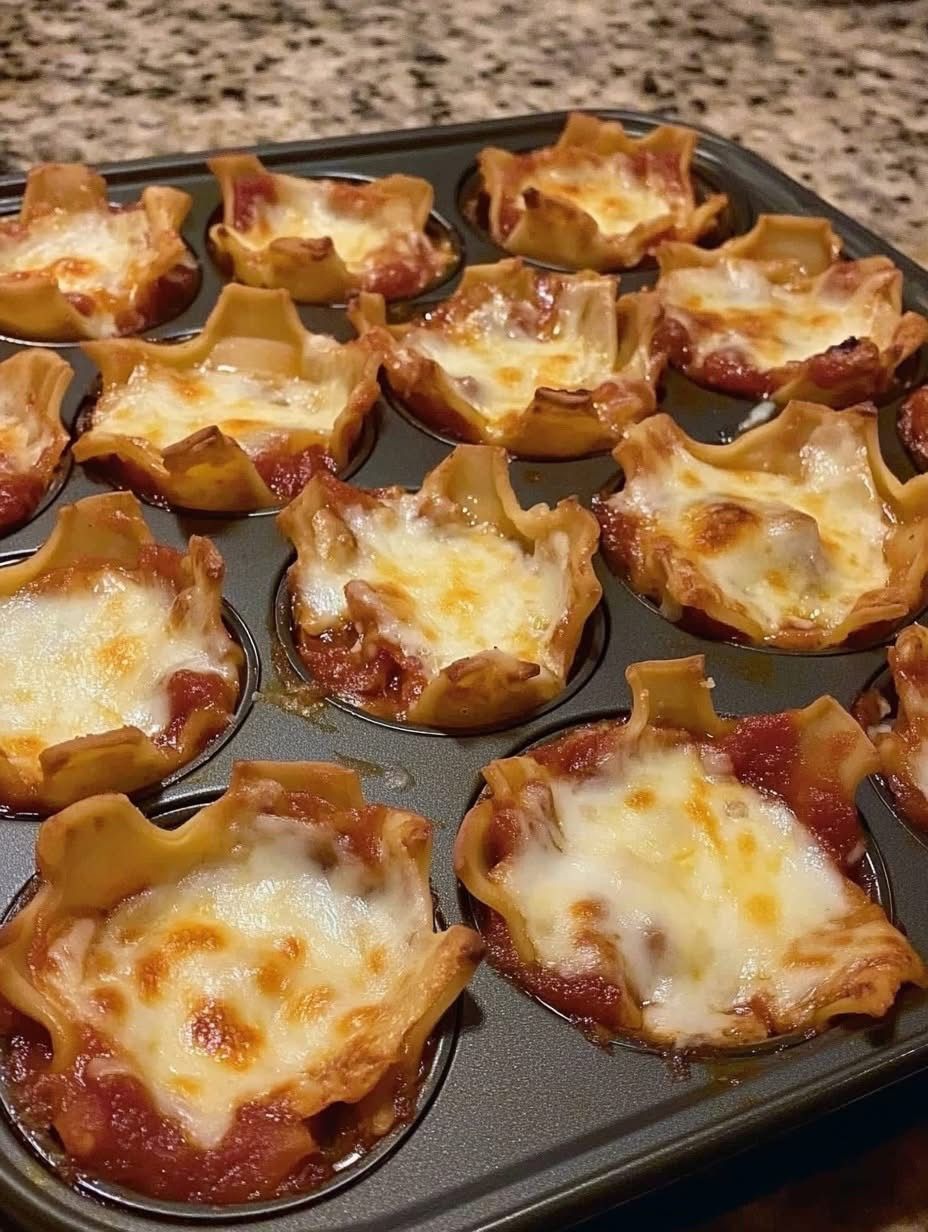 - Place one wonton wrapper in each muffin cup, pressing it gently into the bottom.