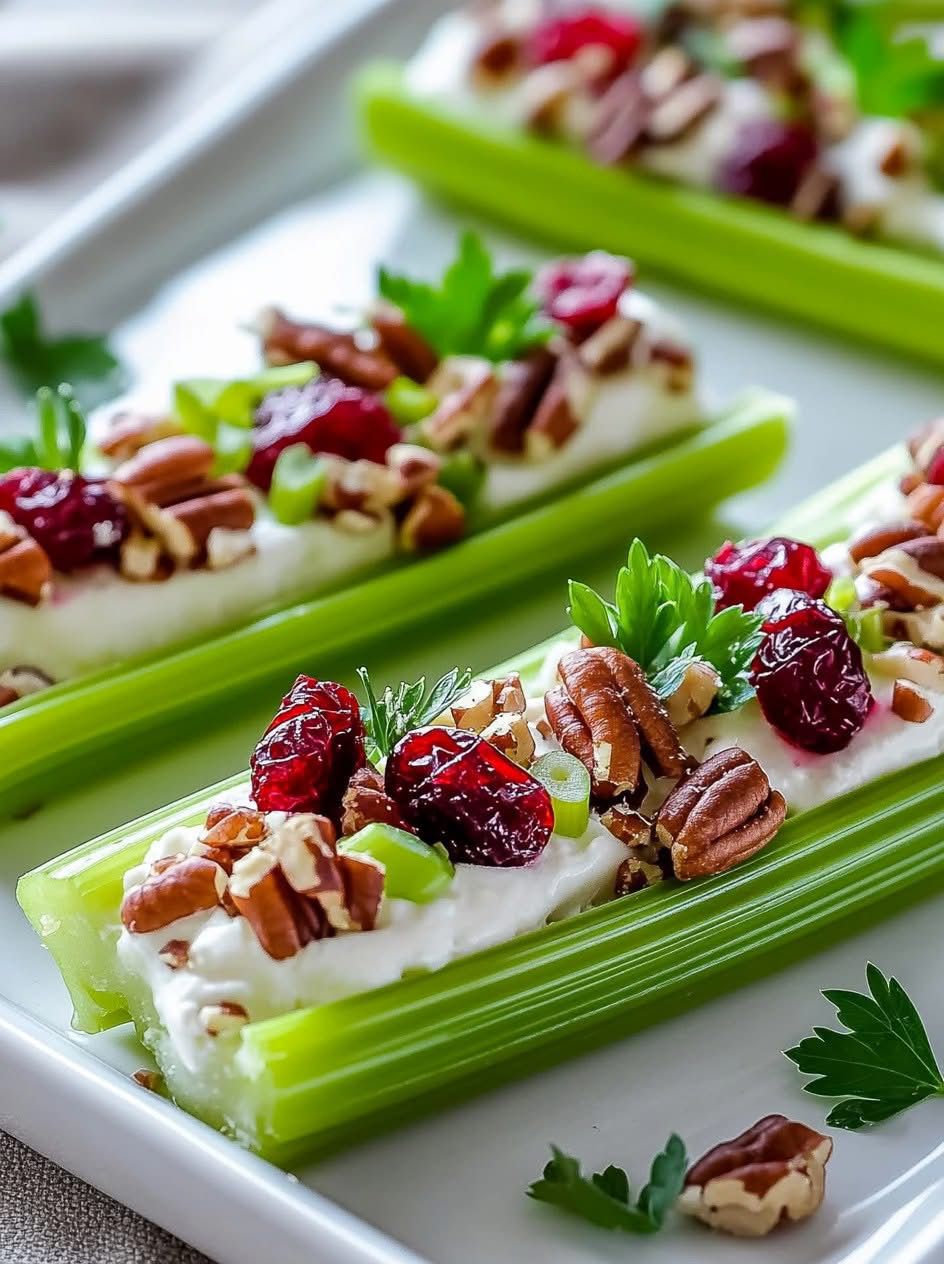 Cranberry Pecan Cream Cheese Stuffed Celery