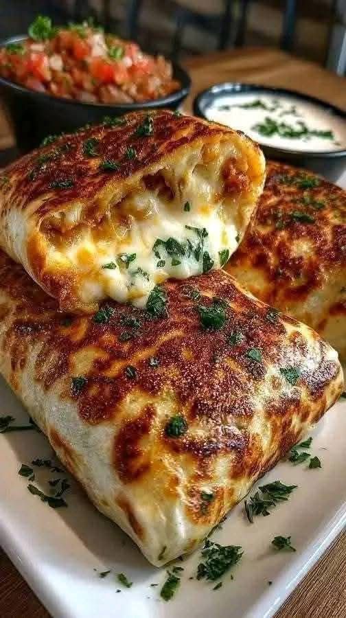 Cheesy Grilled Cheese Burrito π§π― π Ingredients: 4 large flour tortillas 2 cups shredded cheddar cheese (divided) 2 cups shredded mozzarella cheese (divided) 1 cup cooked seasoned ground beef or …