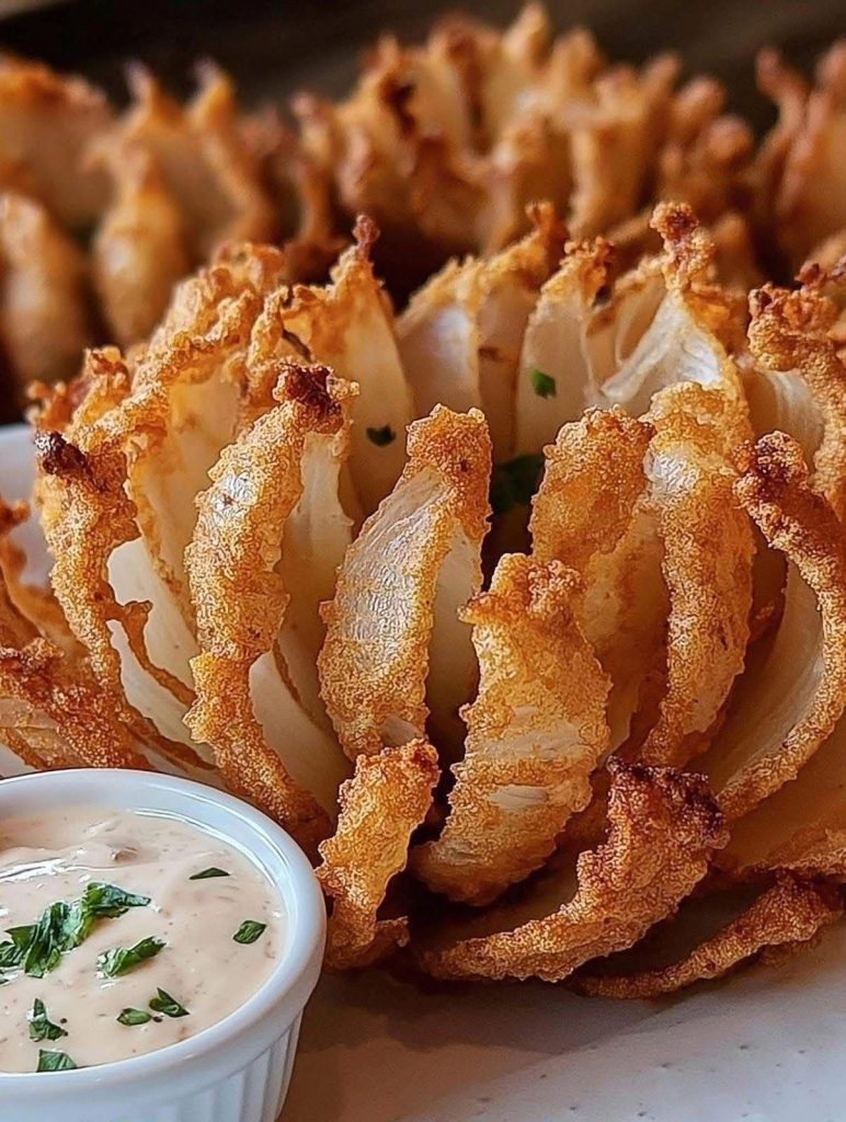 🧅 Blooming Onion with Dipping Sauce Introduction The Blooming Onion is a golden, crispy, and visually stunning appetizer that never fails to impress. A whole onion is skillfully cut to …