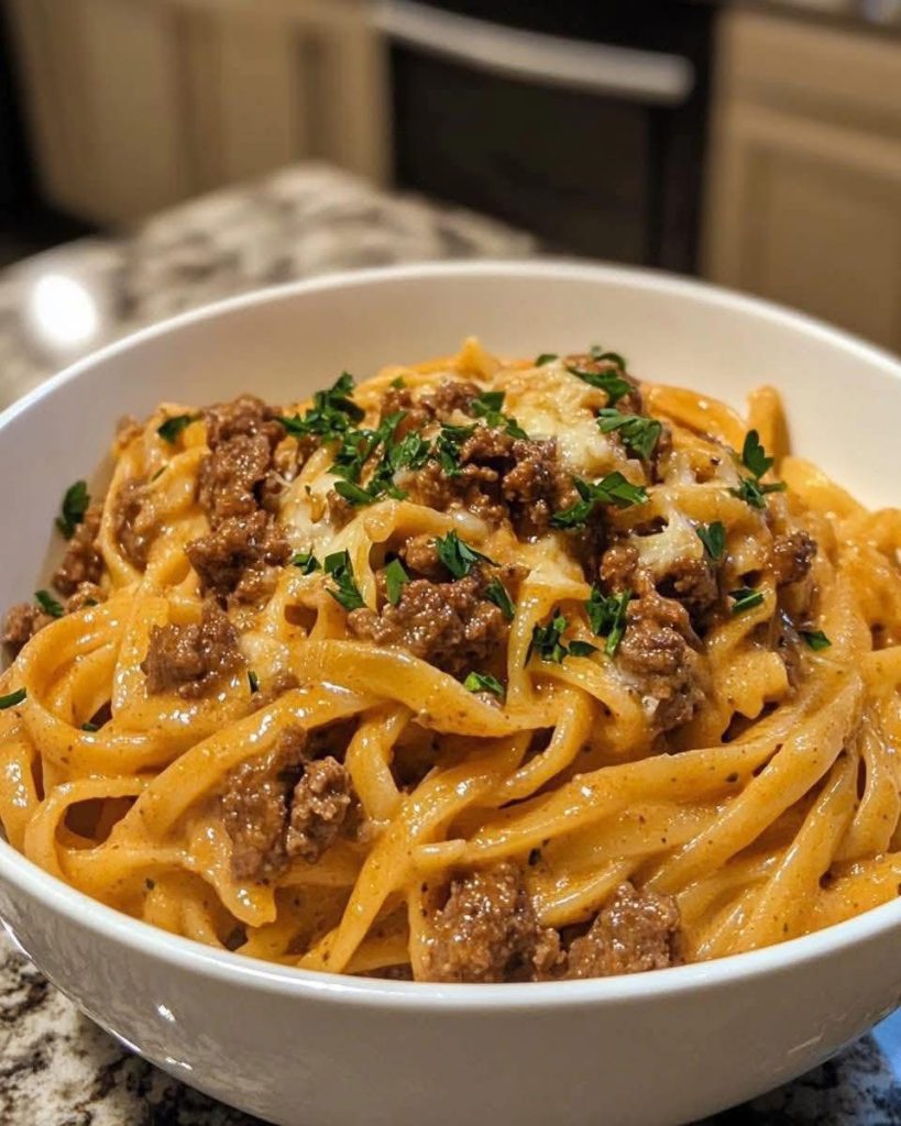 Savory Beef and Garlic Butter Linguine in Parmesan Cream Ingredients: Instructions:
